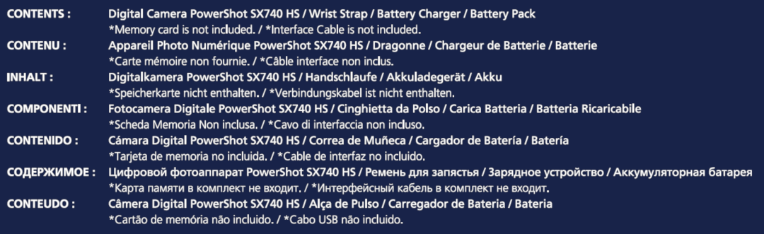 στη συσκευασία θα πρέπει να εμφανίζονται κείμενα σε Αγγλική, Γαλλική, Ιταλική, Γερμανική, Ισπανική και Ρωσική γλώσσα·