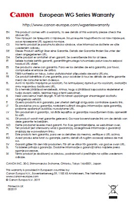 This is a commercial end-customer warranty offered by Canon Europa N.V., Bovernkerkerweg 59, 1185 XB, Amstelveen, The Netherlands (“Canon”) to the end-customers, who purchase Canon WG Series products for their own use, but not acting as consumers under the local laws of the country where the WG Series products are purchased.
